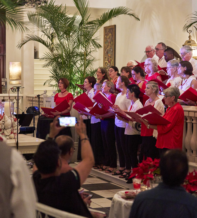 Celebrate tradition with Christmas Carols by the Durban Symphonic Choir on The Ocean Terrace, featuring a plated starter, buffet main, plated dessert, and festive entertainment.