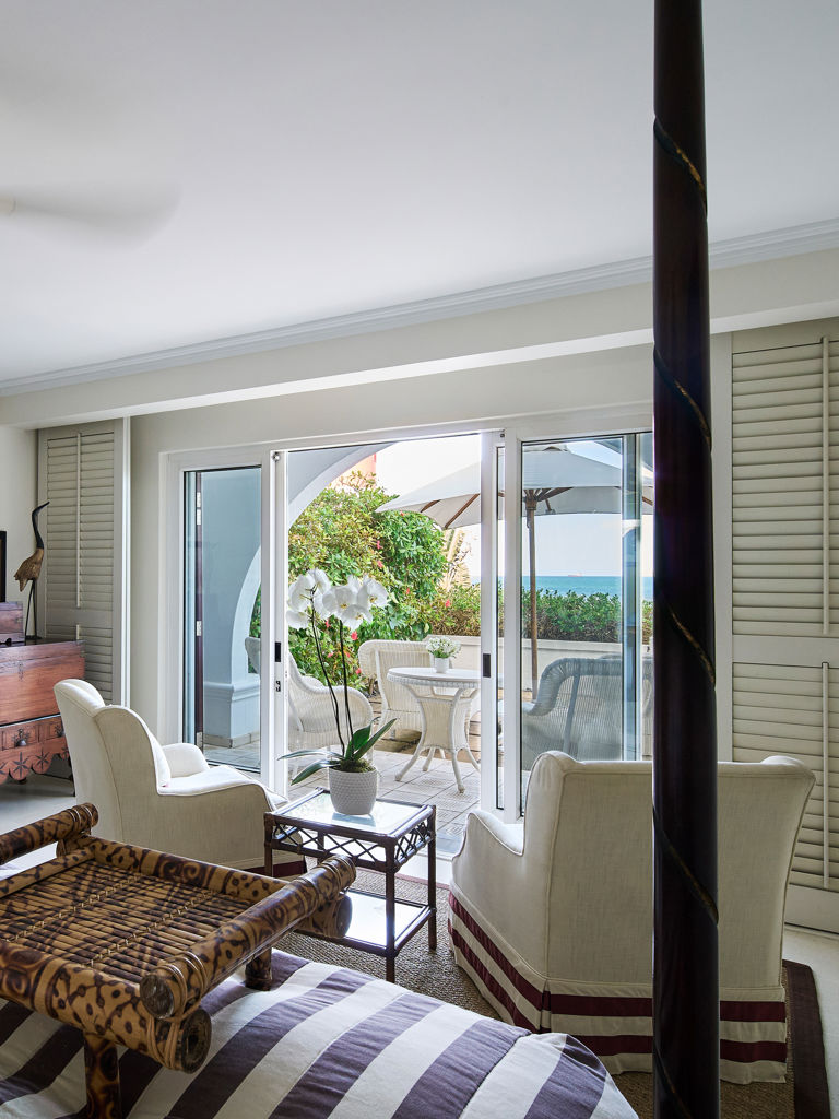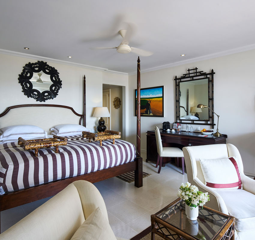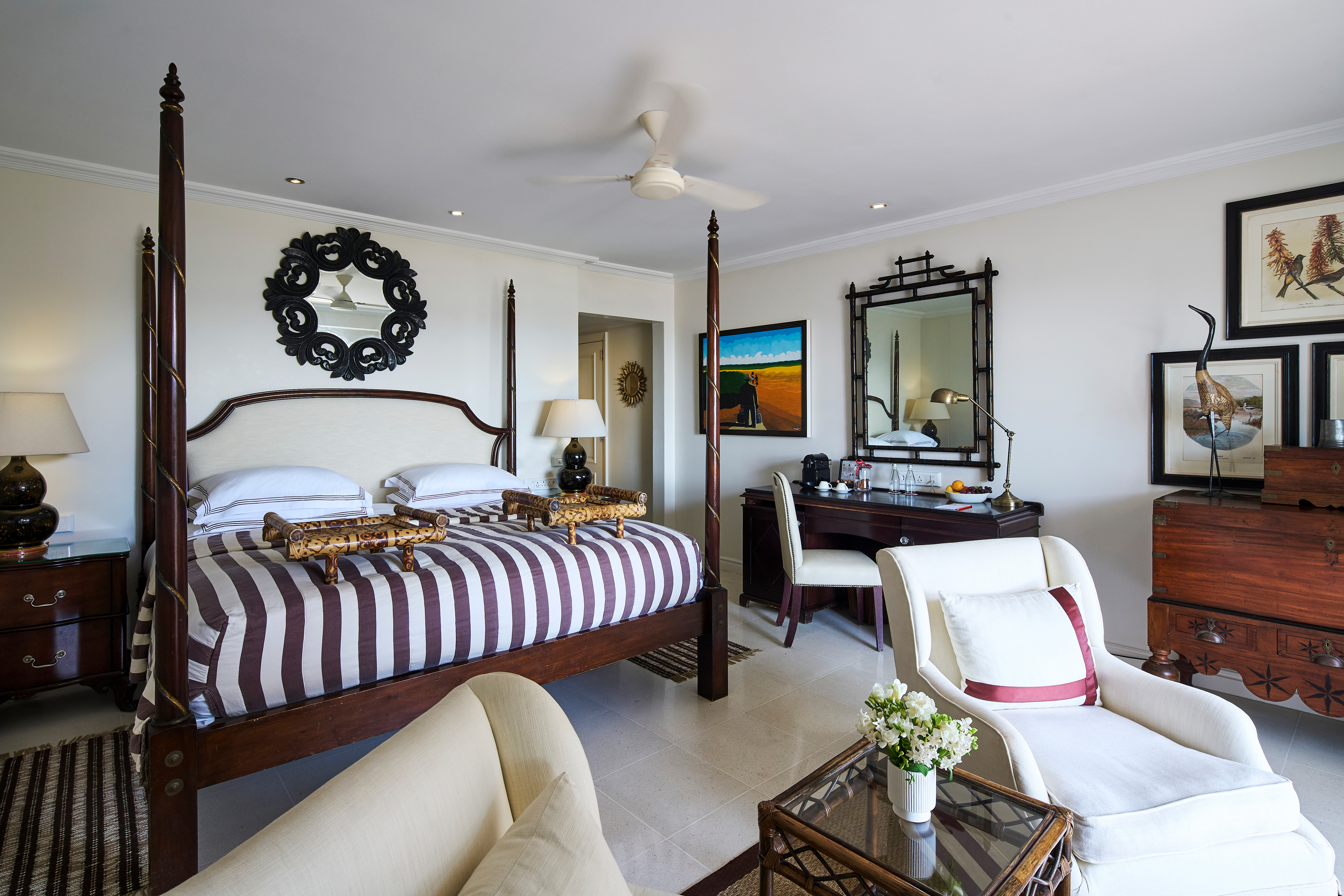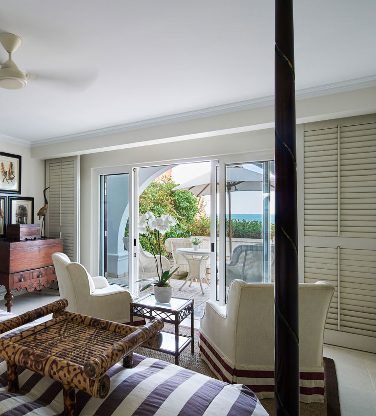 These beautiful sea-facing rooms are located on the lower ground level and lead out onto the grassed area in front. All rooms consist of a four-poster king bed with an en-suite bathroom offering a shower and single vanity.