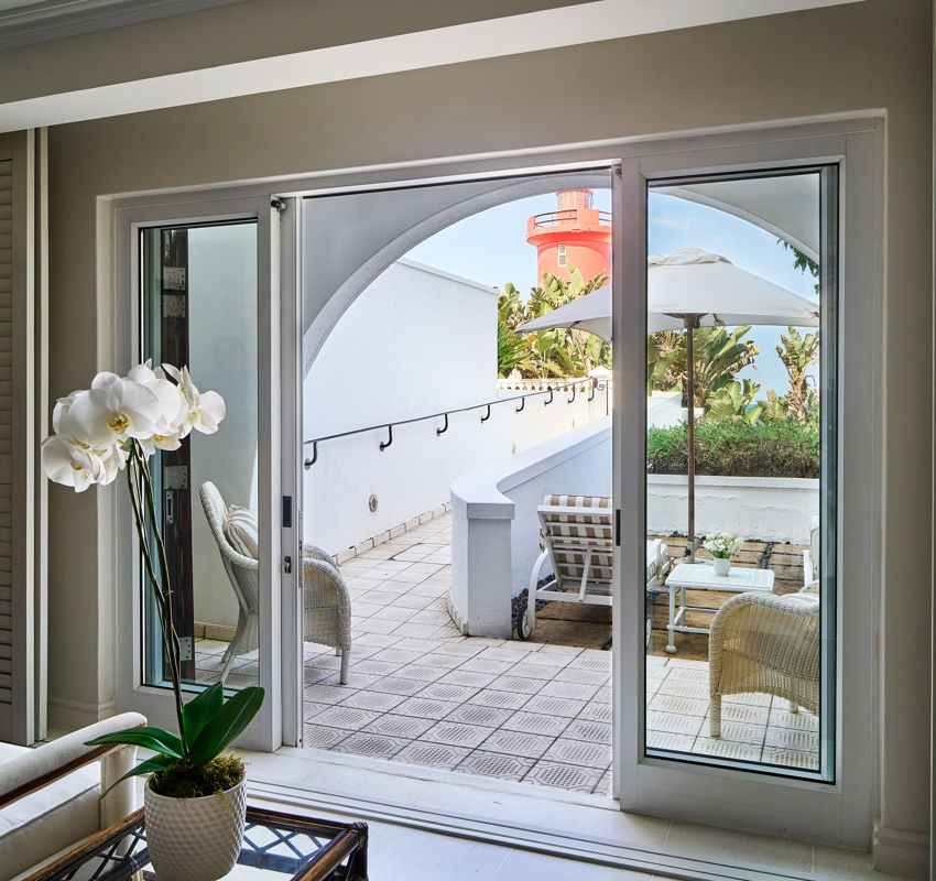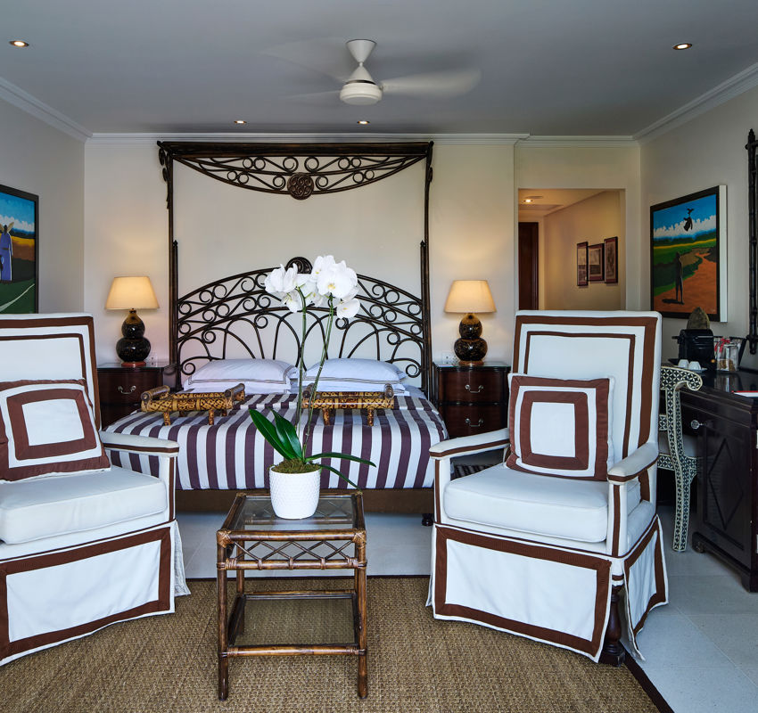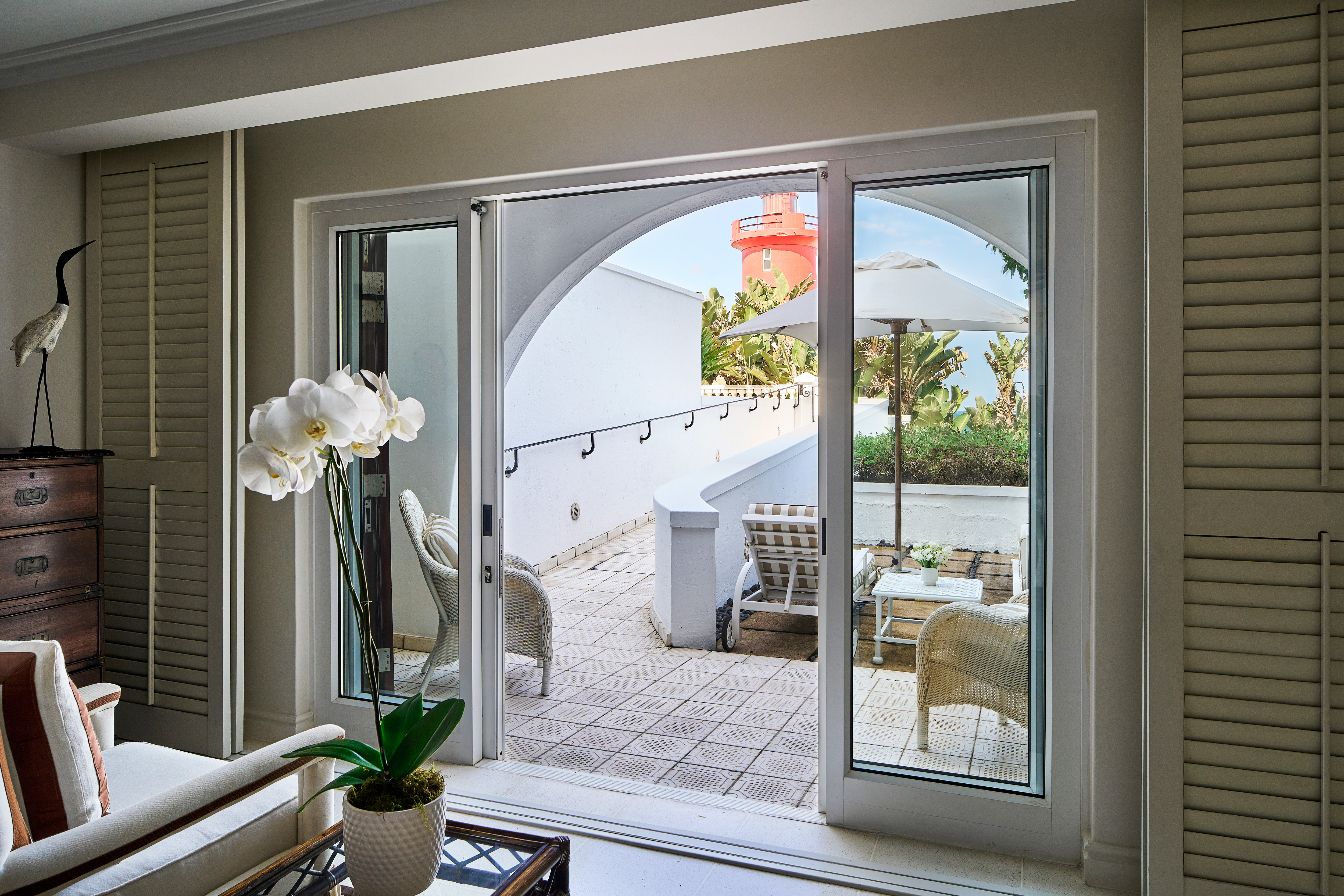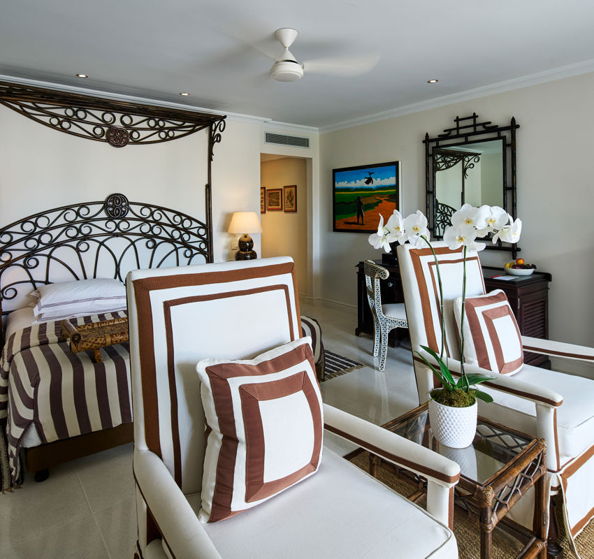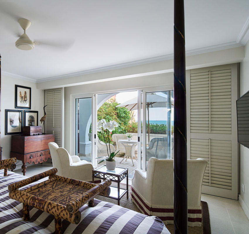 These beautiful sea-facing rooms are located on the lower ground level and lead out onto the grassed area in front. All rooms consist of a four-poster king bed with an en-suite bathroom offering a shower and single vanity.