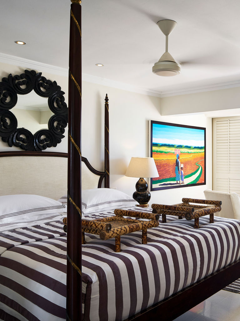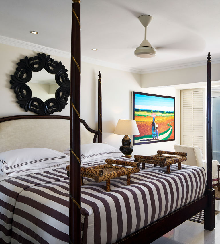 Situated on the lower-ground level, with a private terrace offering exceptional sea views, the Sea Facing Cabanas are richly decorated with four-poster beds and original African artworks.