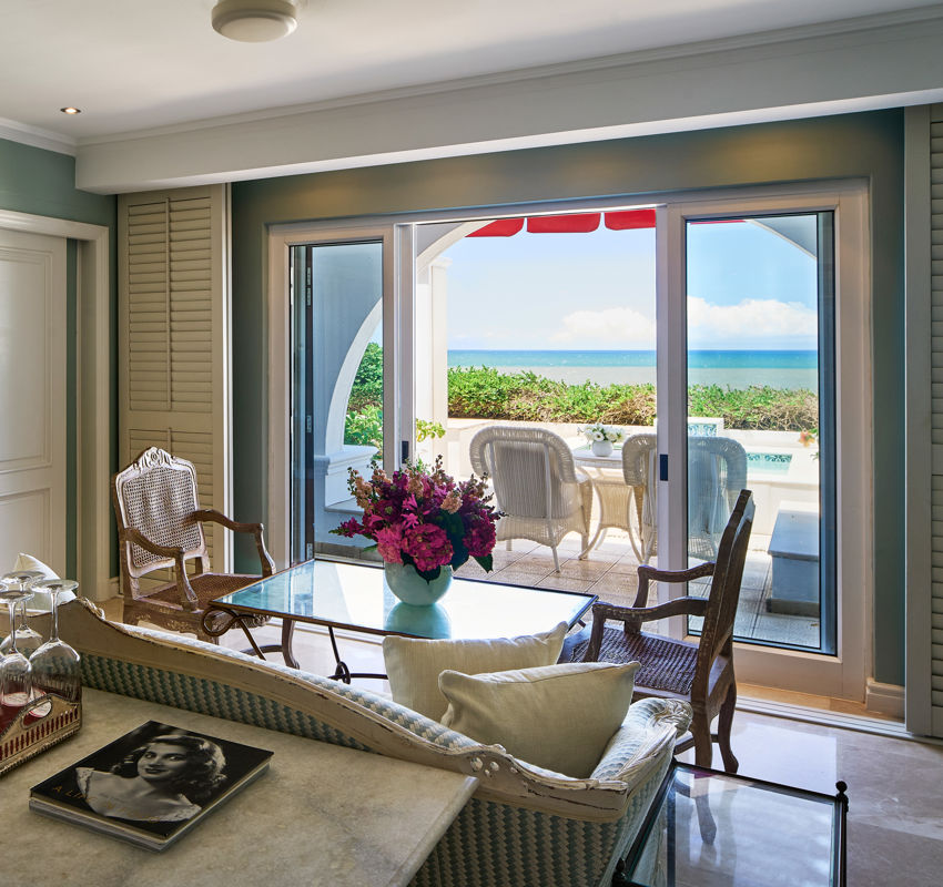 The sought-after Deluxe Sea Facing Suites each enjoy a private plunge pool and spacious terrace giving onto the hotel’s expansive lawns. Individually decorated, with a separate bedroom and lounge area, these elegantly appointed suites are ideal for guests seeking extra space for an extended stay.