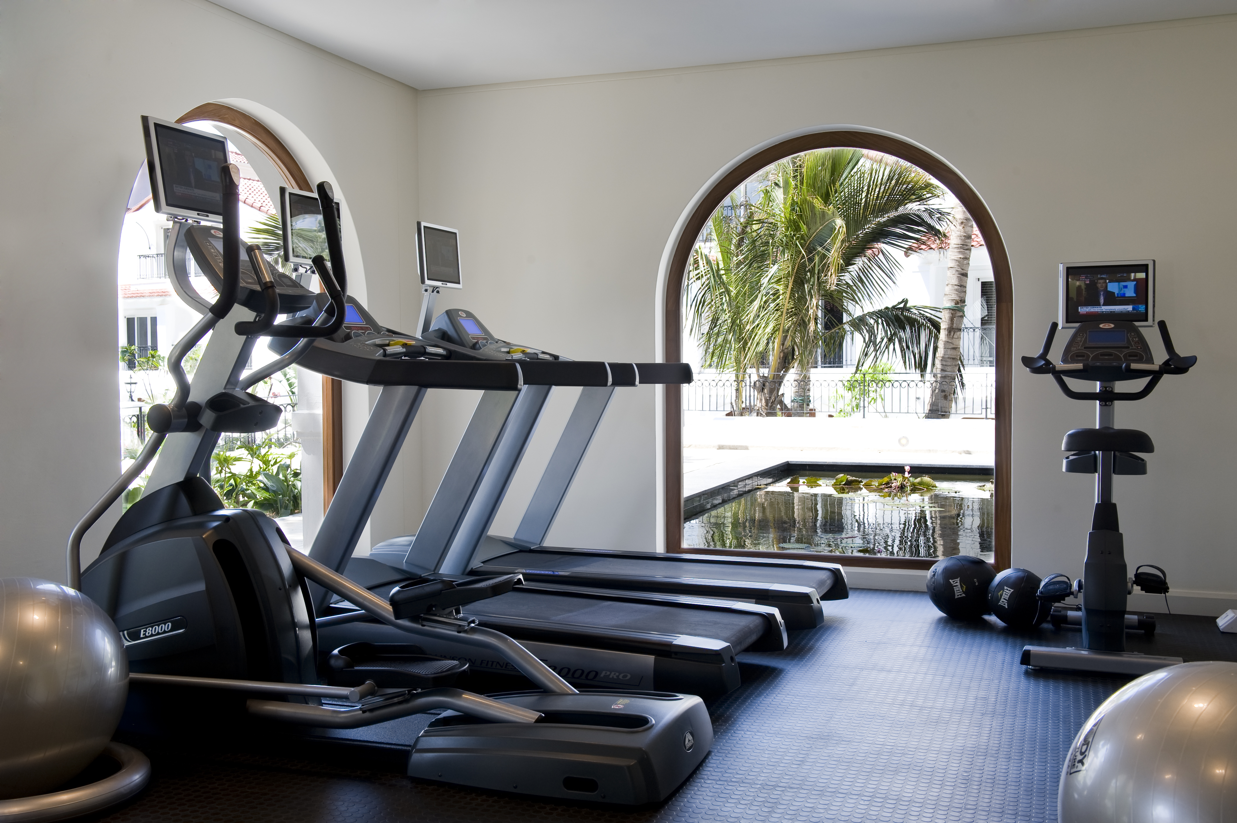 Our modern fitness centre in our spa complex is open 24-hours a day and is fully equipped with treadmills, exercise bicycles, a cross-trainer, a power plate, a multi-exercise tower, weights, medicine balls, yoga and exercise mats, pilates balls, satellite TV, and a refreshment station.